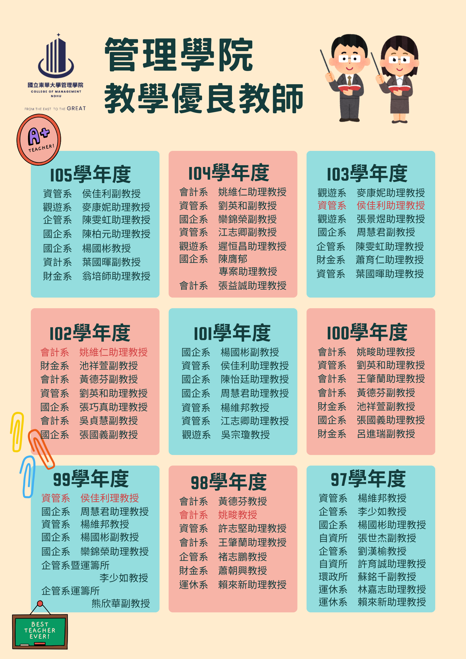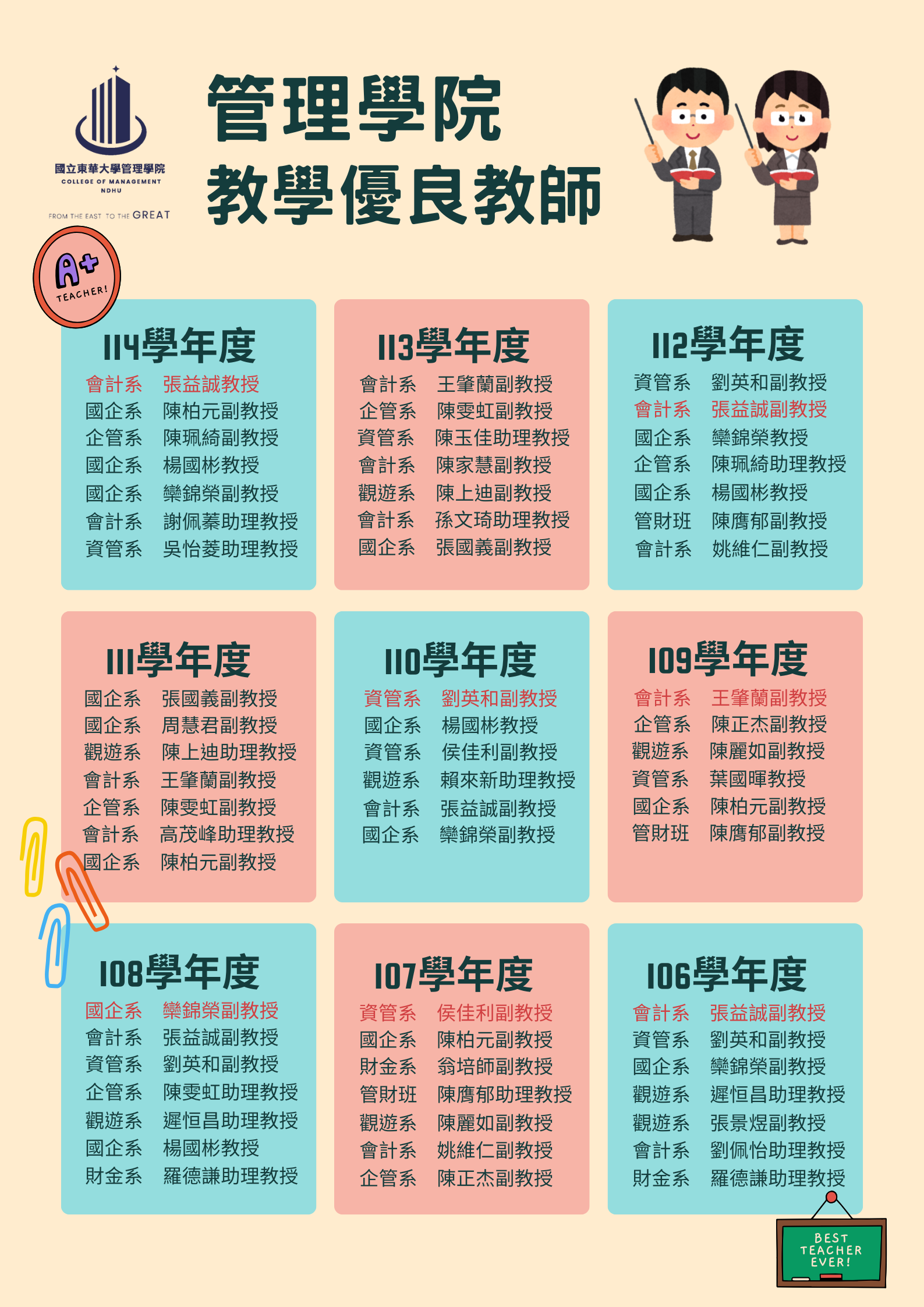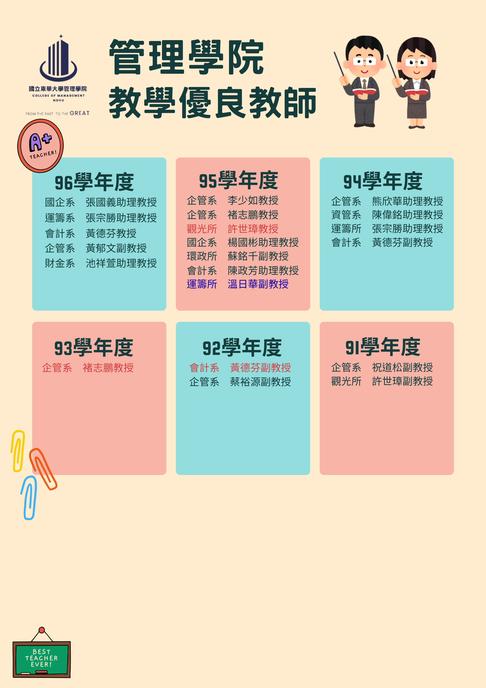 國立東華大學校級教學優良教師名錄